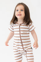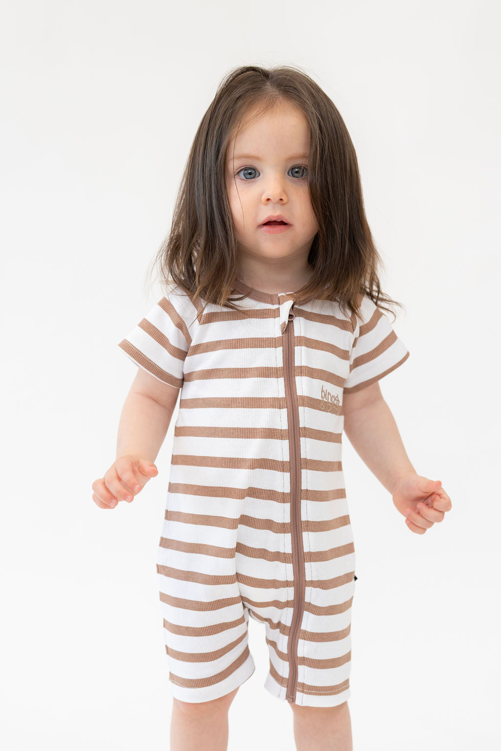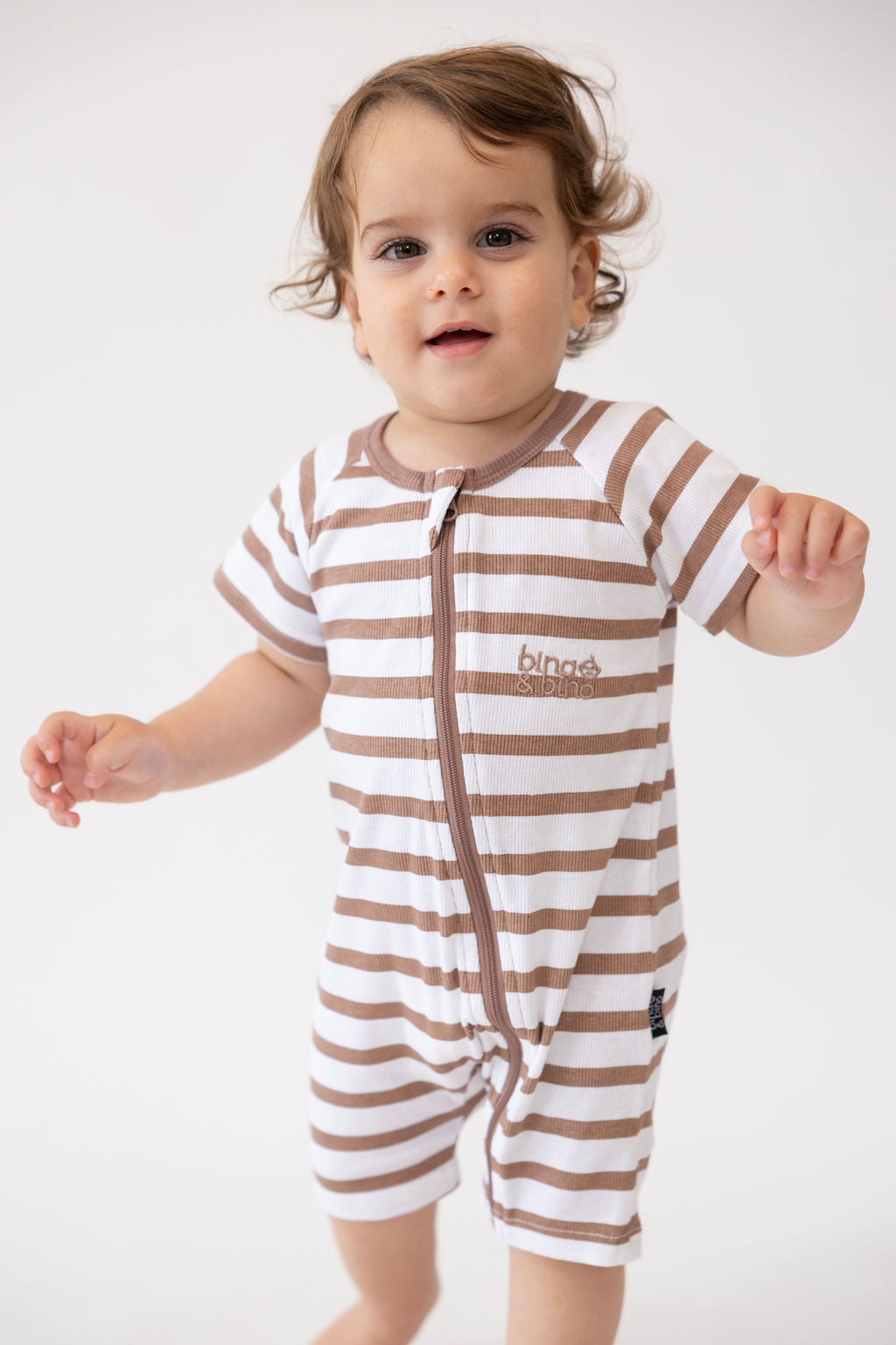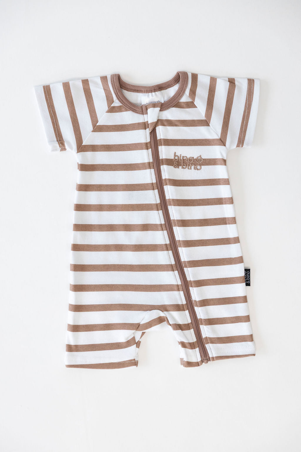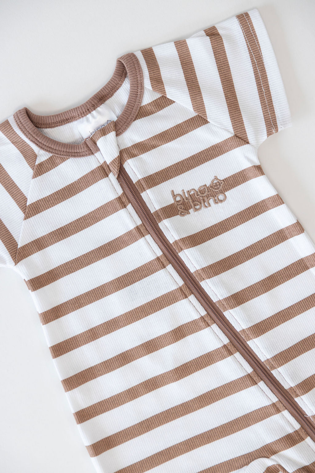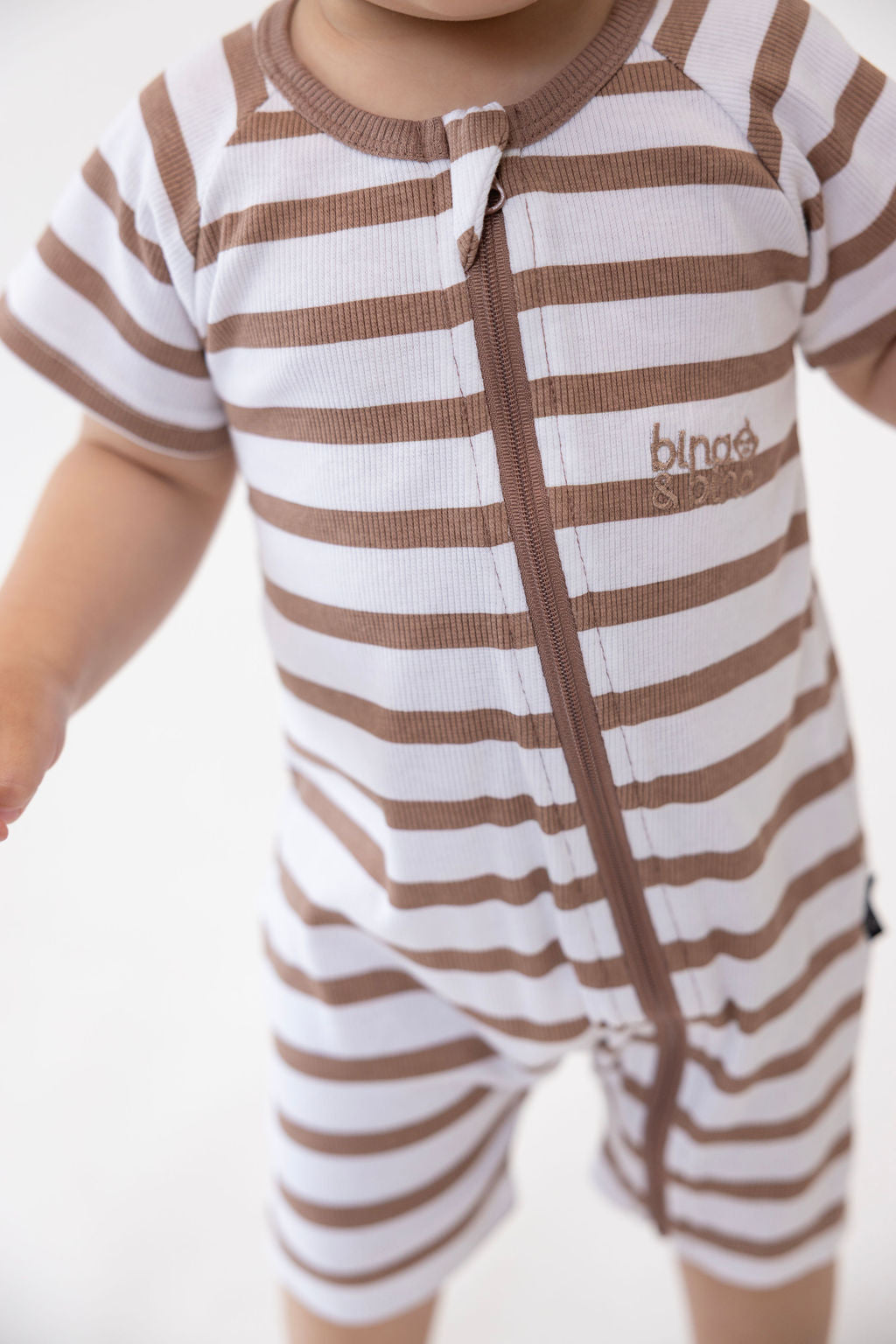 אוברול קצר עם רוכסן מבד ריב // MOCHA STRIPE