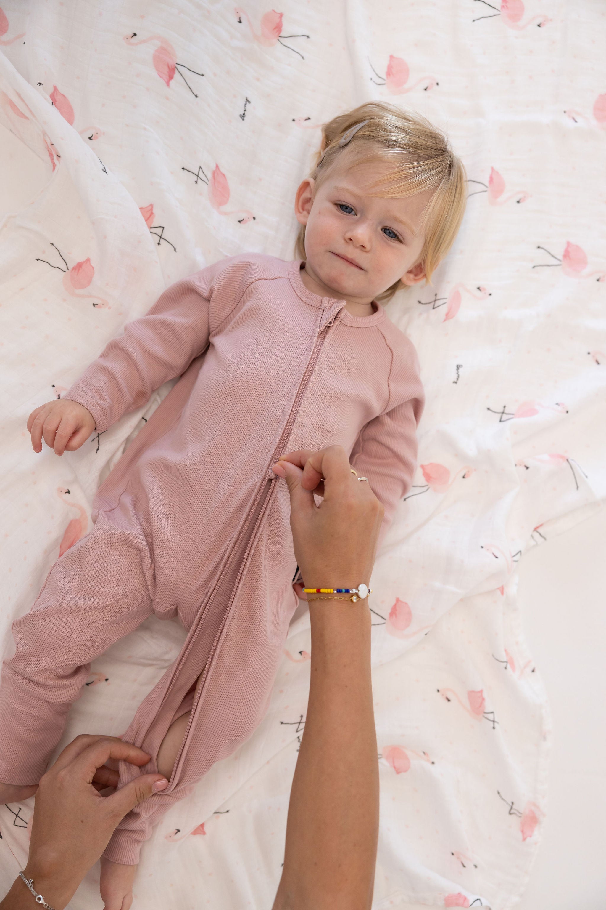 הרוכסן הדו כיווני הופך את זמן ההחתלה לסופר מהיר וקל! יש לרכוס מלמעלה בעת ההלבשה, ולסגור מלמטה שמחליפים חיתול (וכך לא חושפים את הבטן של התינוק)