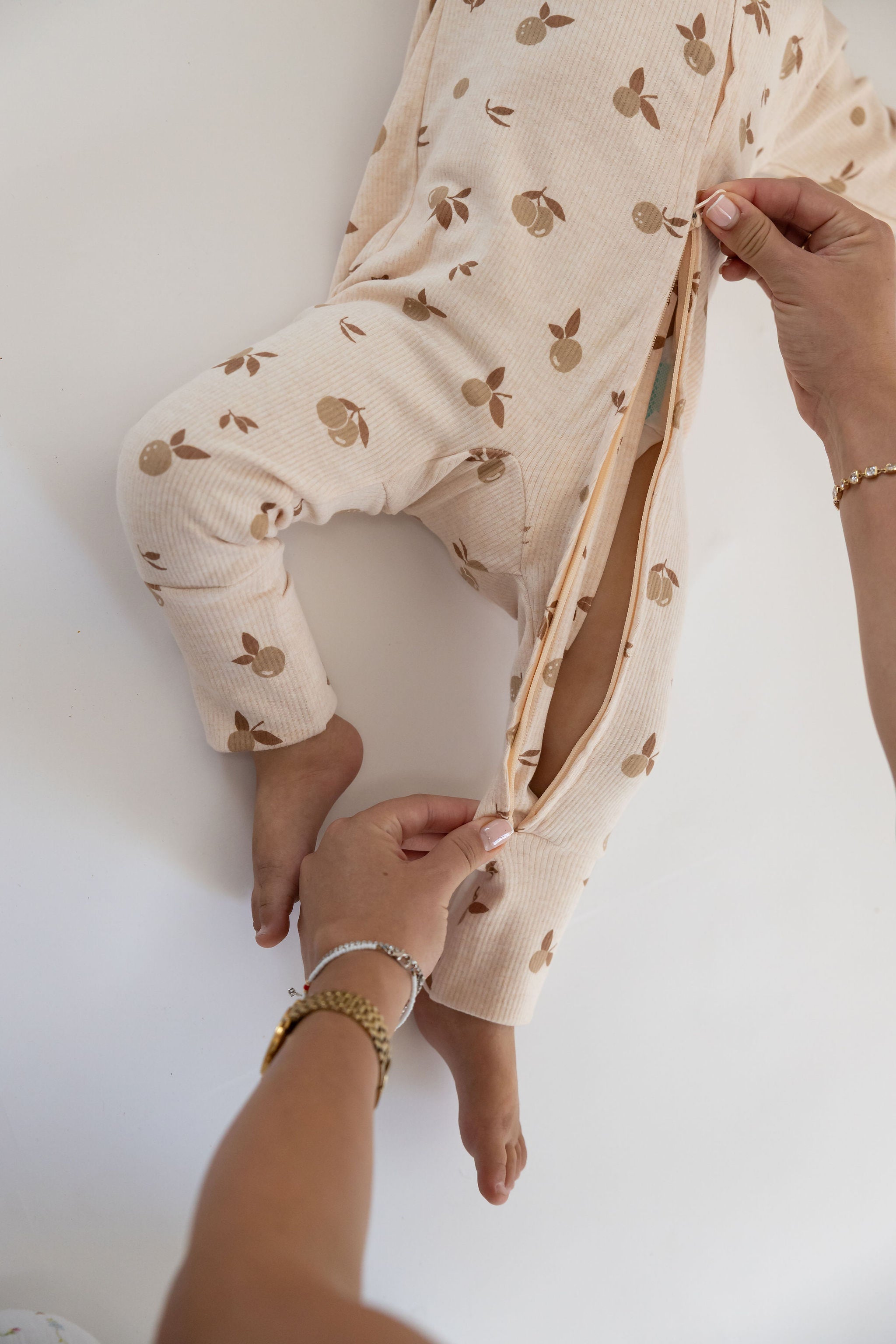 הרוכסן הדו כיווני הופך את זמן ההחתלה לסופר מהיר וקל! יש לרכוס מלמעלה בעת ההלבשה, ולסגור מלמטה שמחליפים חיתול (וכך לא חושפים את הבטן של התינוק)