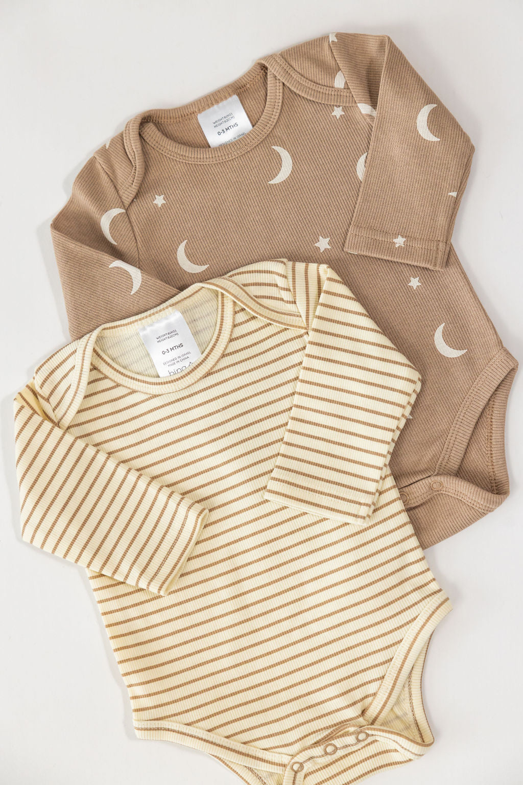 מארז 2 בגדי גוף מבד ריב // CHASING THE MOON + COFFEE STRIPE