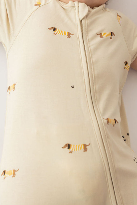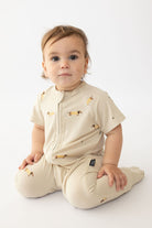 אוברול רוכסן דו כיווני עם שרוול קצר מבד במבוק