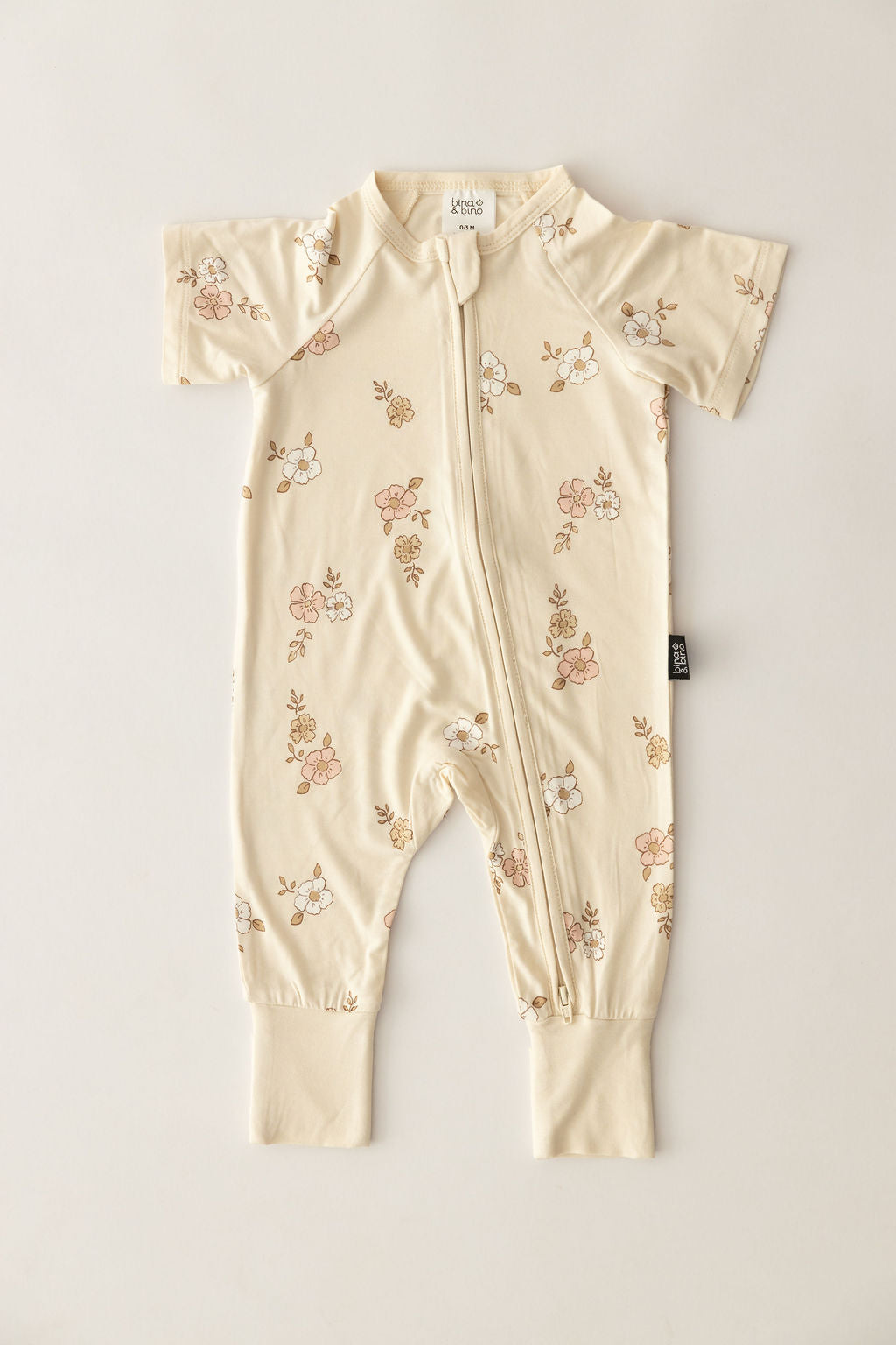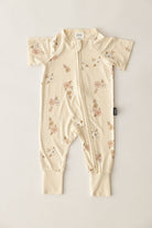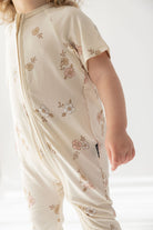 אוברול רוכסן דו כיווני עם שרוול קצר מבד במבוק // VINTAGE PETALS SHORT