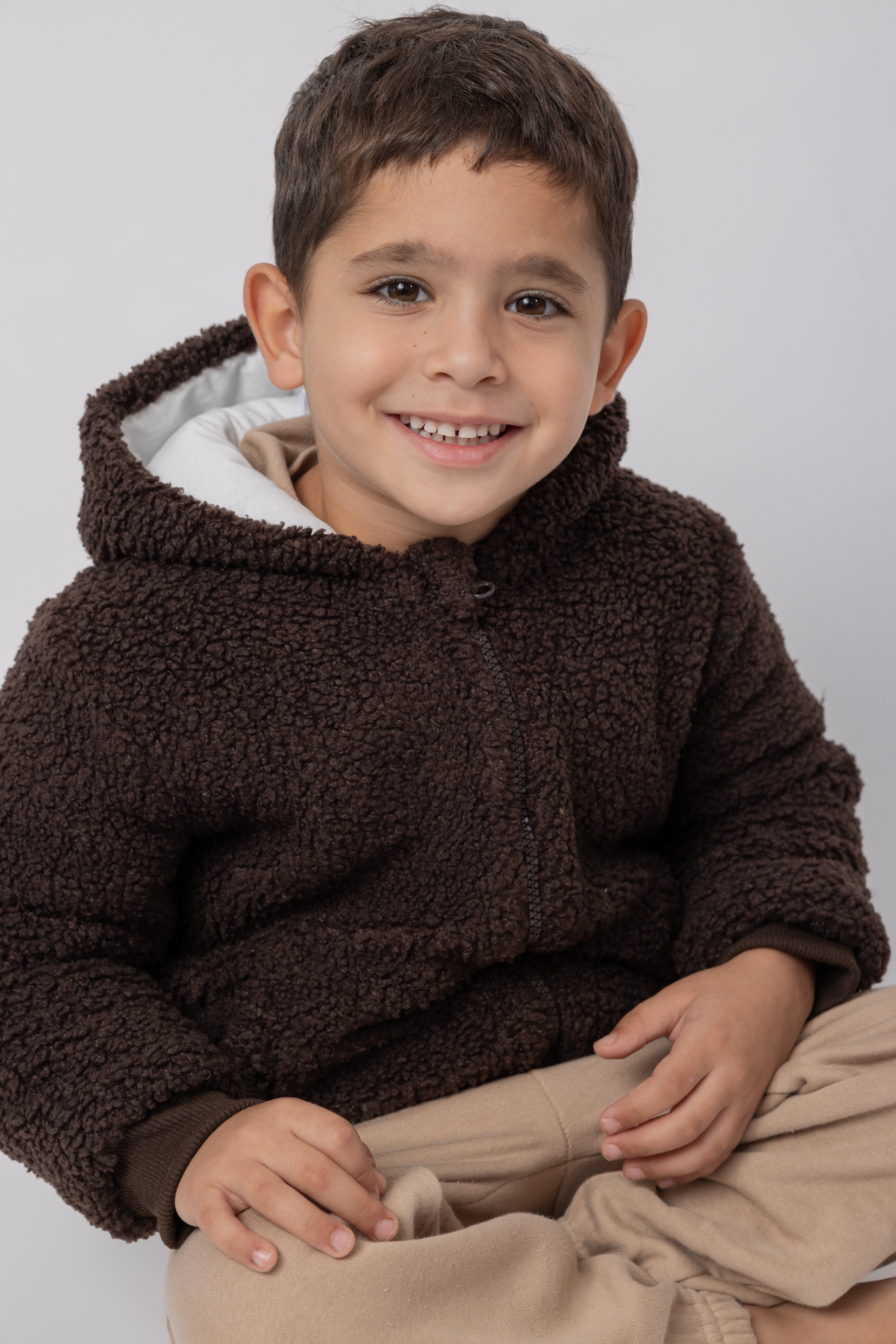 מעיל פרווה, סופר רך ומחמם. מעוצב עם רוכסן להלבשה נוחה ועם גימורים מבד ריב. החל ממידה 18-24 חודשים המעיל מגיע עם קפוצ'ון