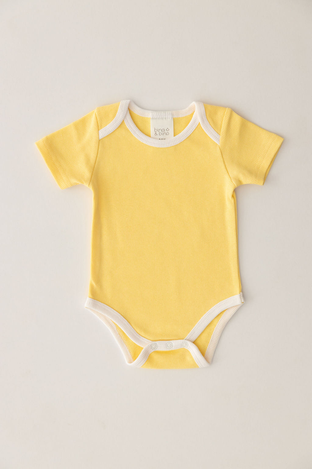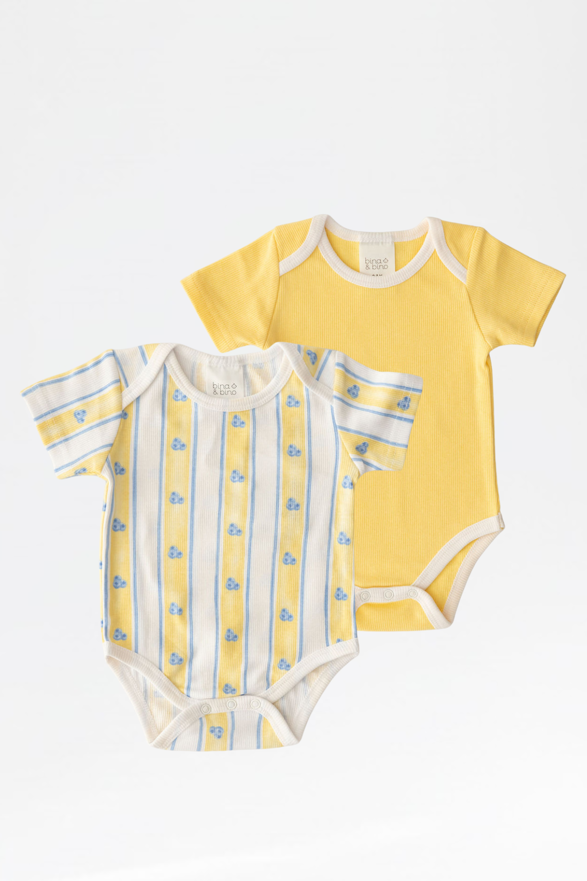 מארז 2 בגדי גוף קצרים מבד ריב // YELLOW SUN+ SUNNY BLUEBERRY