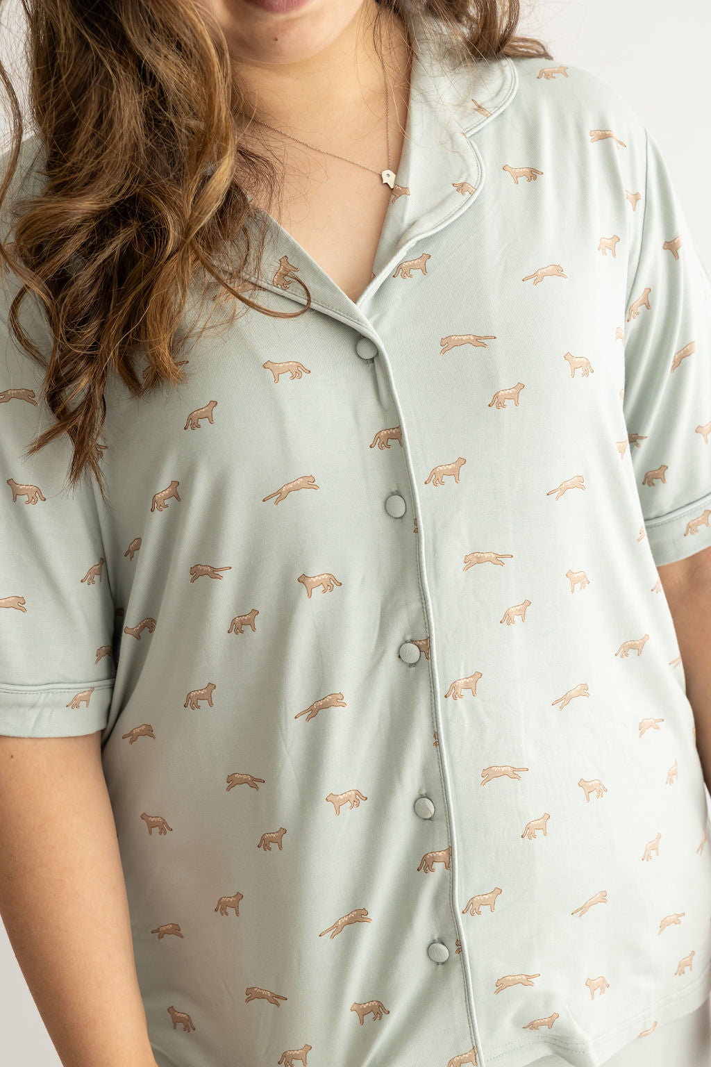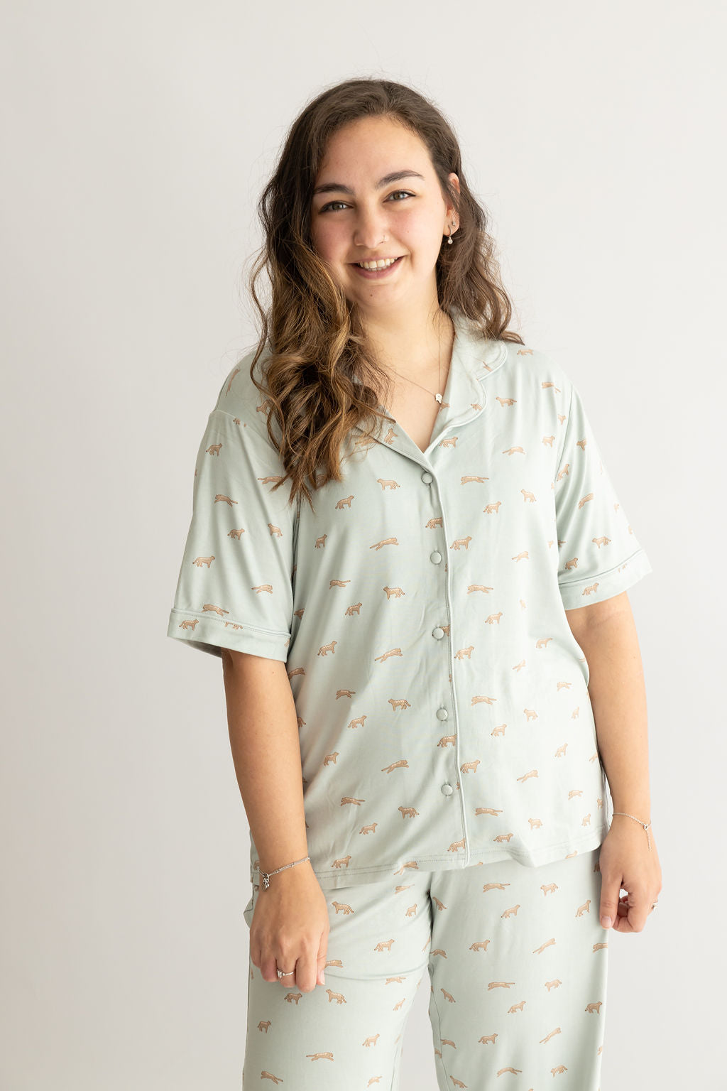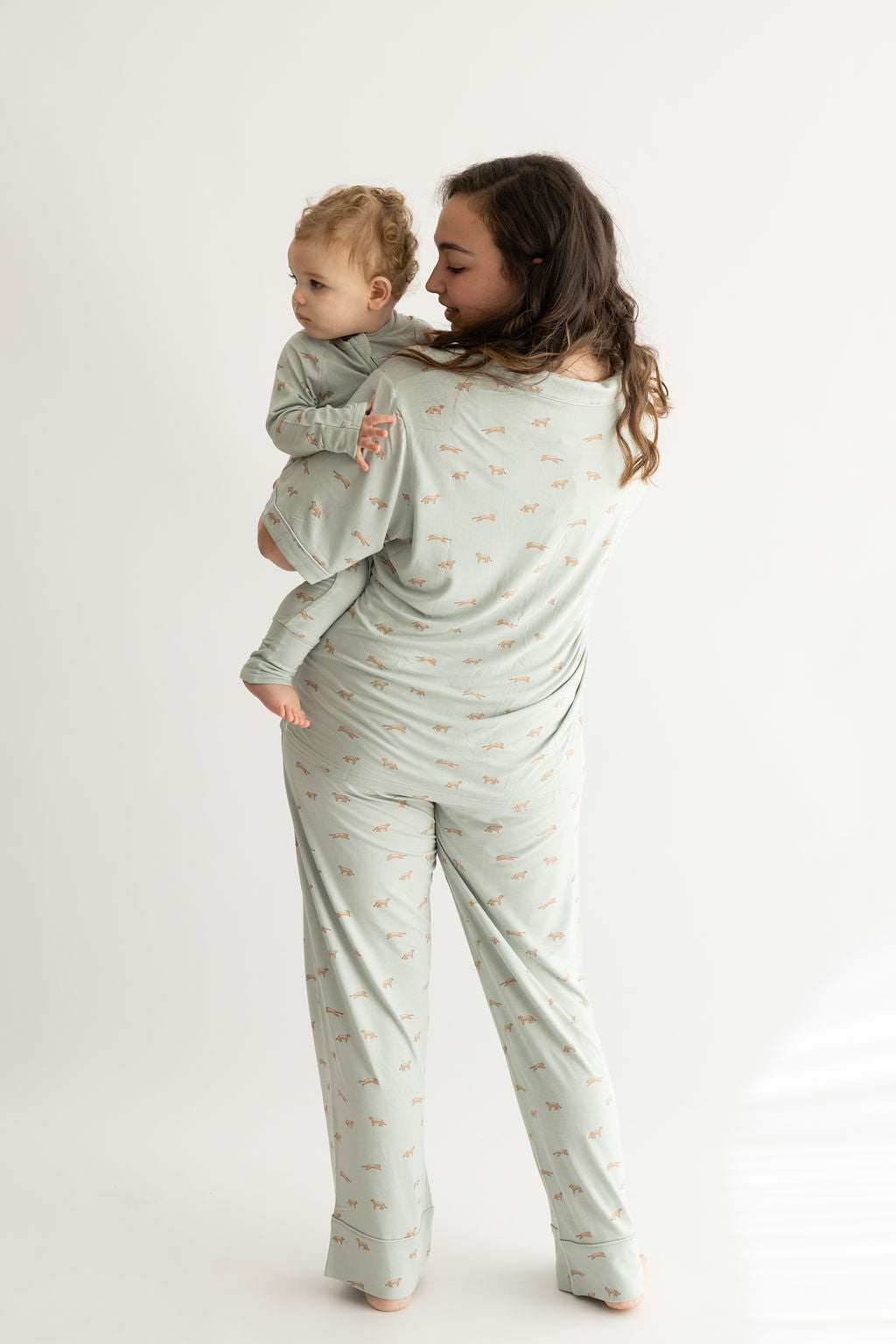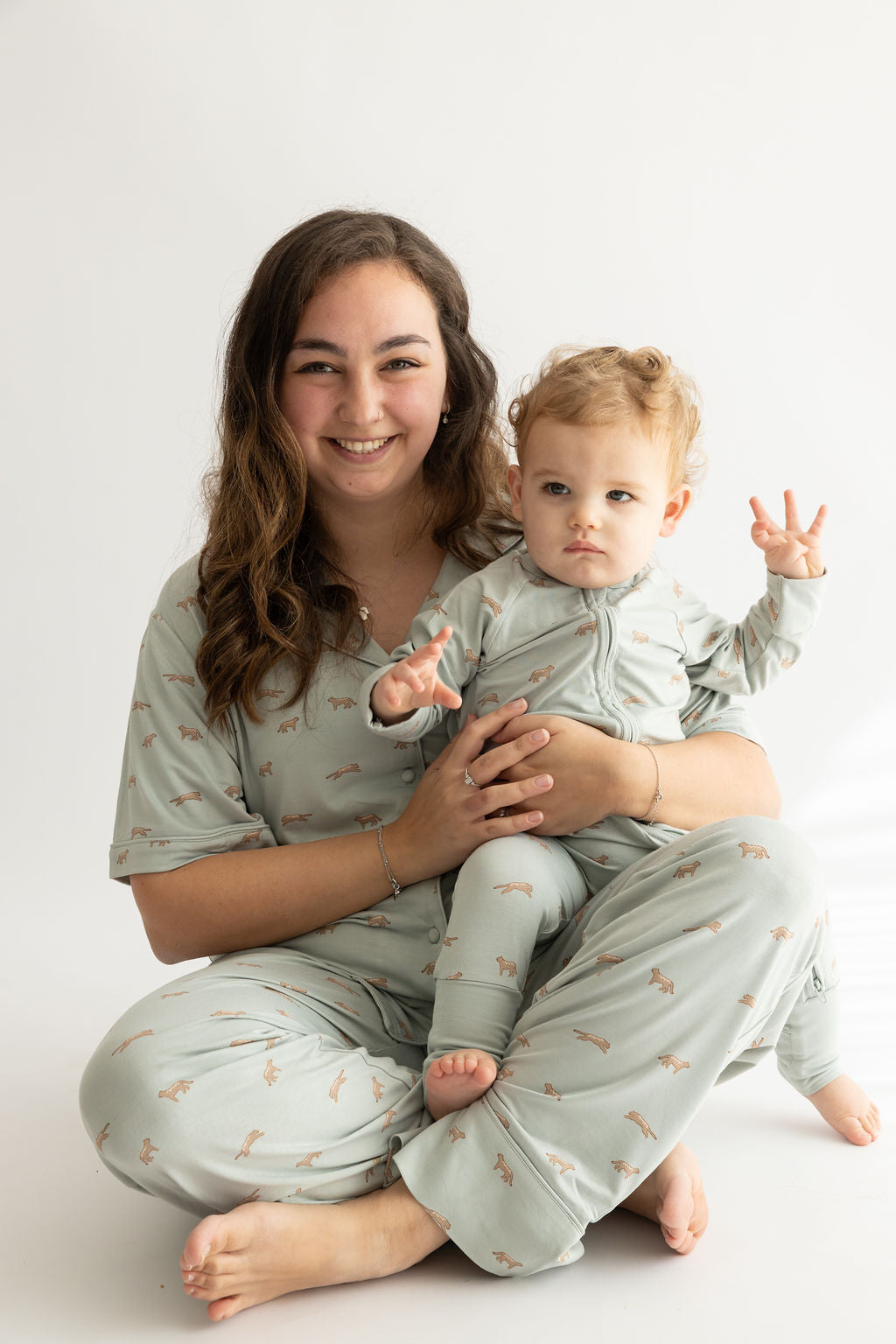 פיג'מות מבמבוק לאישה, סופר רכות ונושמות. תואמות בצורה מושלמת לאוברול לתינוק שלנו! גזרה משוחררת, עם כפתורים בחולצה, לנוחות בזמן הנקה. הפיג'מה עשוייה מויסקוזה במבוק, בד היפואלרגני וטבעי.