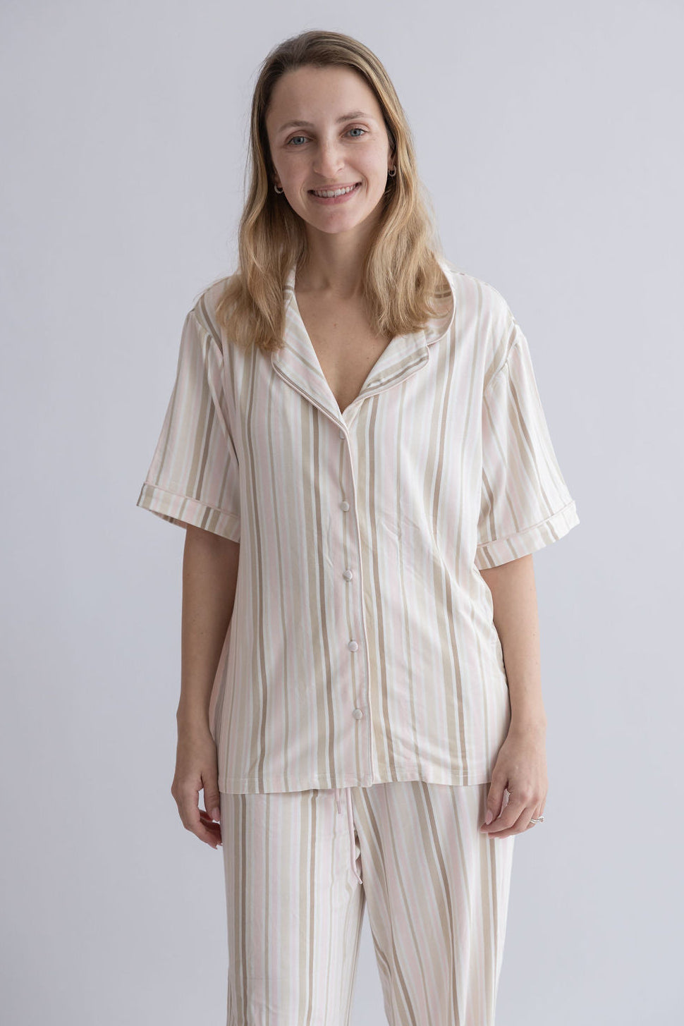 סט פיג'מה לנשים מבמבוק // ROSE SAND STRIPE