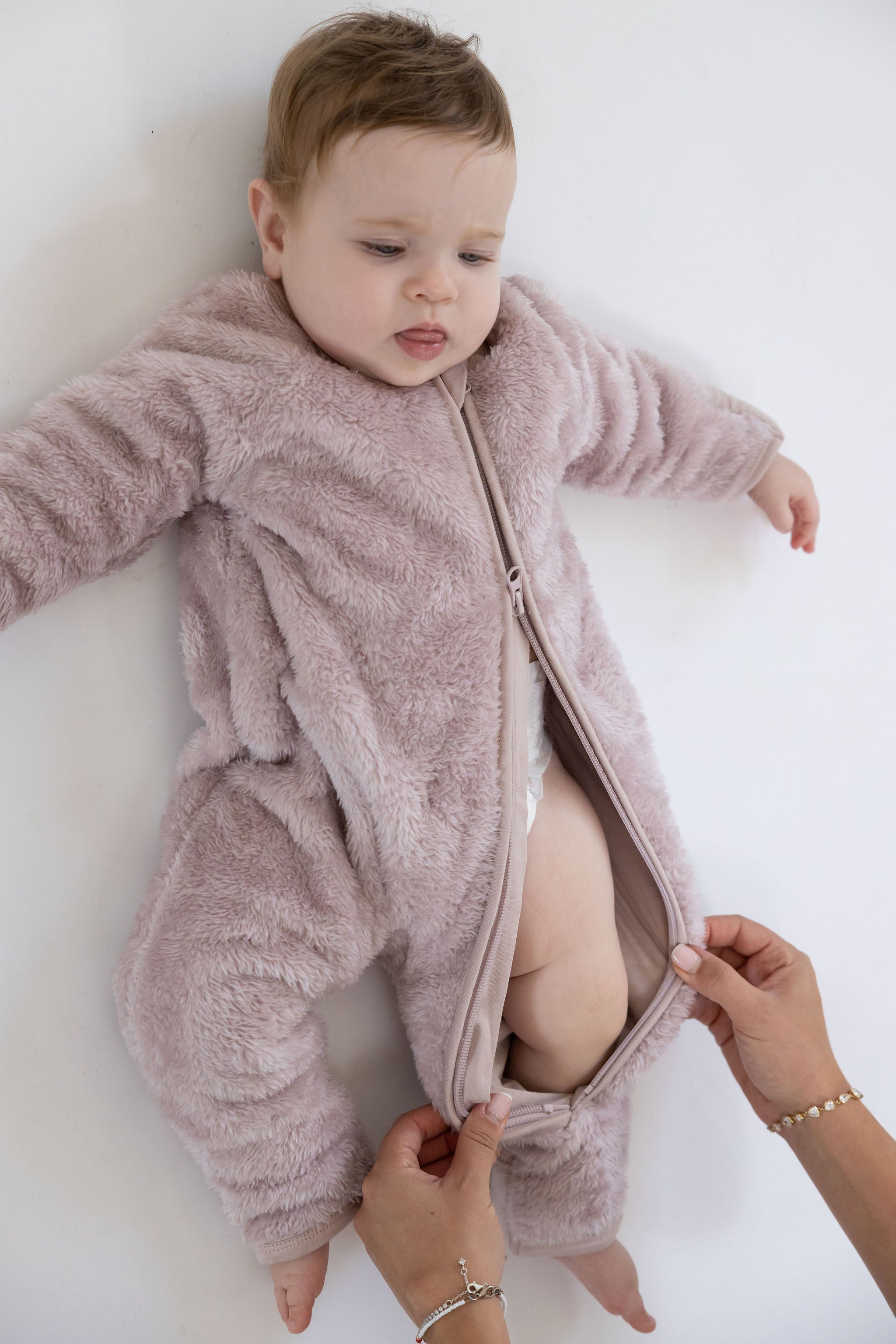 אוברול פרוותי רך עם רוכסן דו כיווני