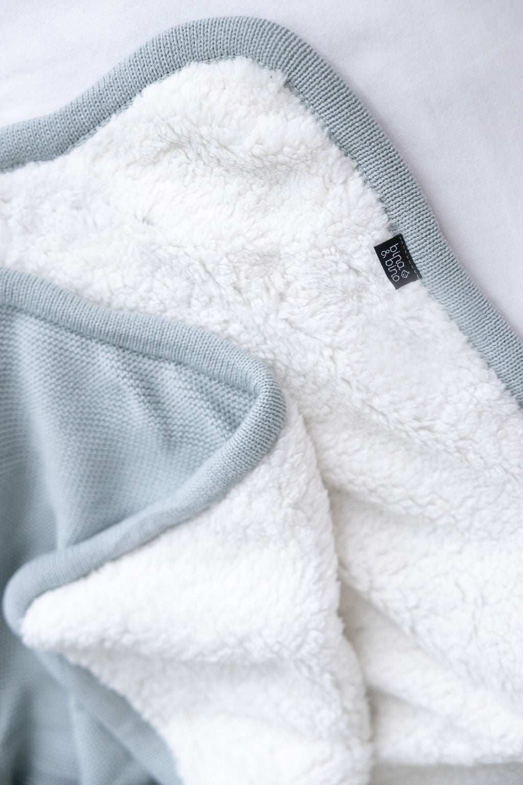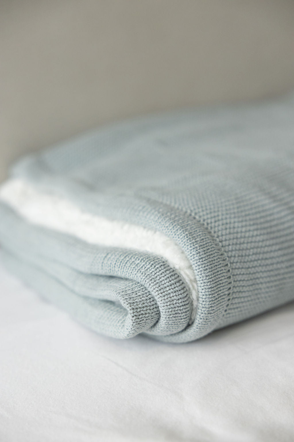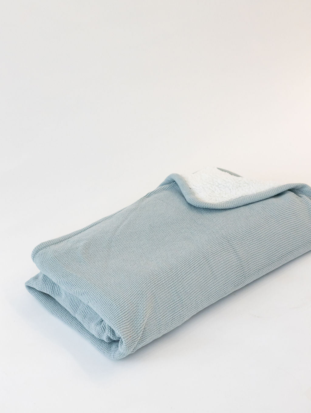 שמיכה סרוגה, עבה וסופר רכה. פרוותית מבפנים וסרוגה 100% כותנה מבחוץ. האביזר המושלם לחורף. גודל: 100*100 ס"מ