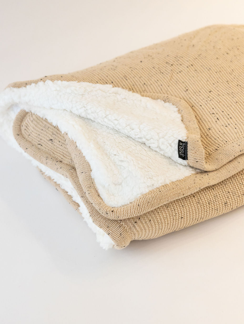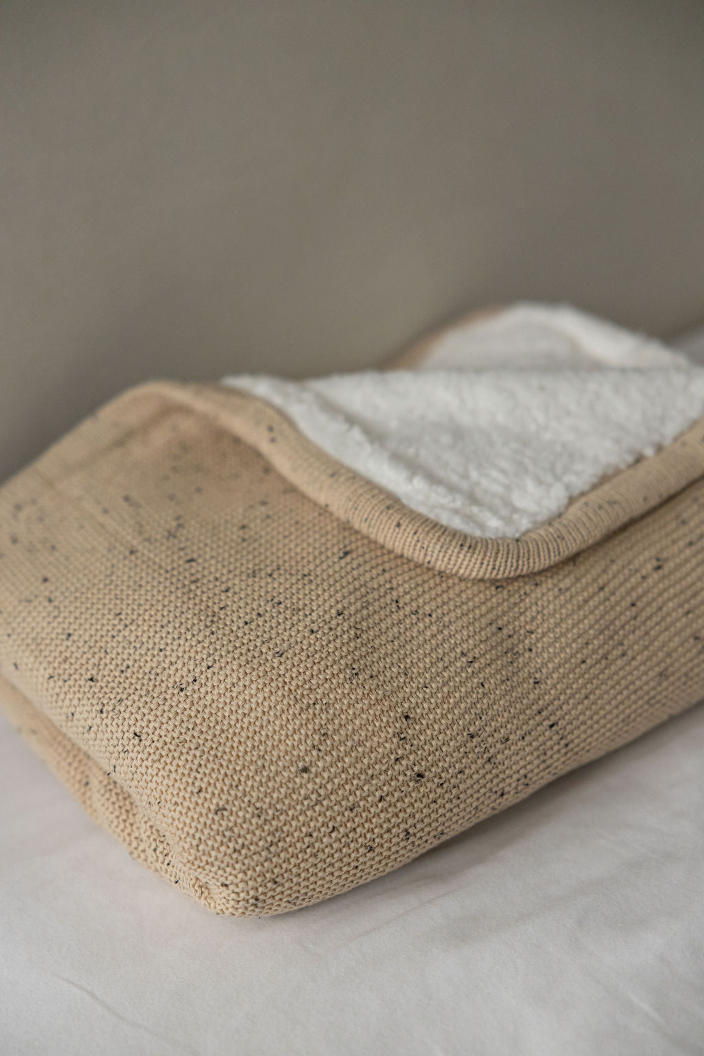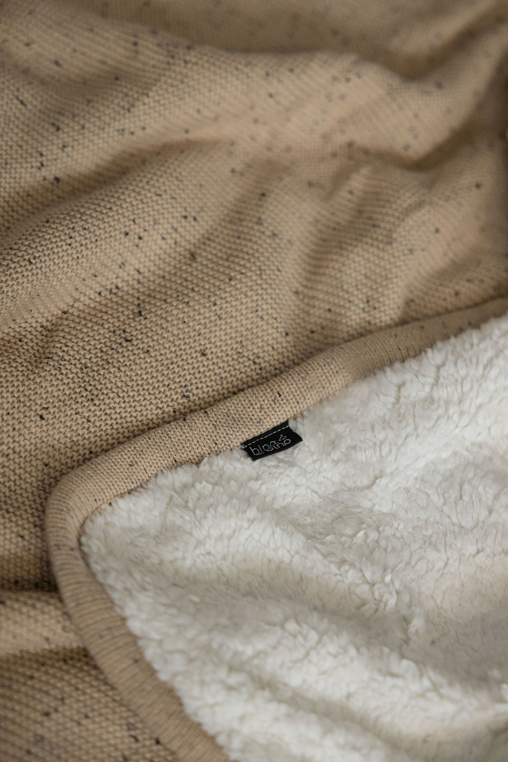 שמיכה סרוגה, עבה וסופר רכה. פרוותית מבפנים וסרוגה 100% כותנה מבחוץ. האביזר המושלם לחורף. גודל: 100*100 ס"מ