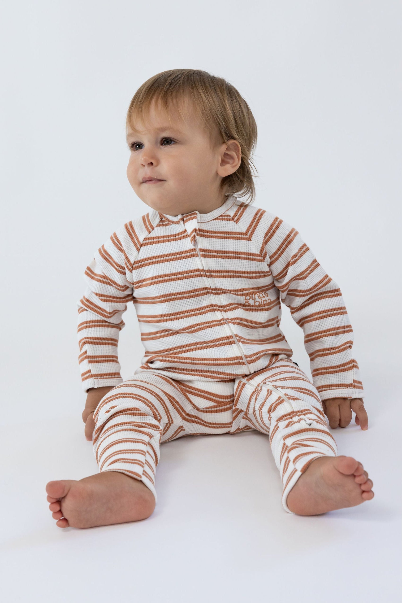 הרוכסן הדו כיווני הופך את זמן ההחתלה לסופר מהיר וקל! יש לרכוס מלמעלה בעת ההלבשה, ולסגור מלמטה שמחליפים חיתול (וכך לא חושפים את הבטן של התינוק)