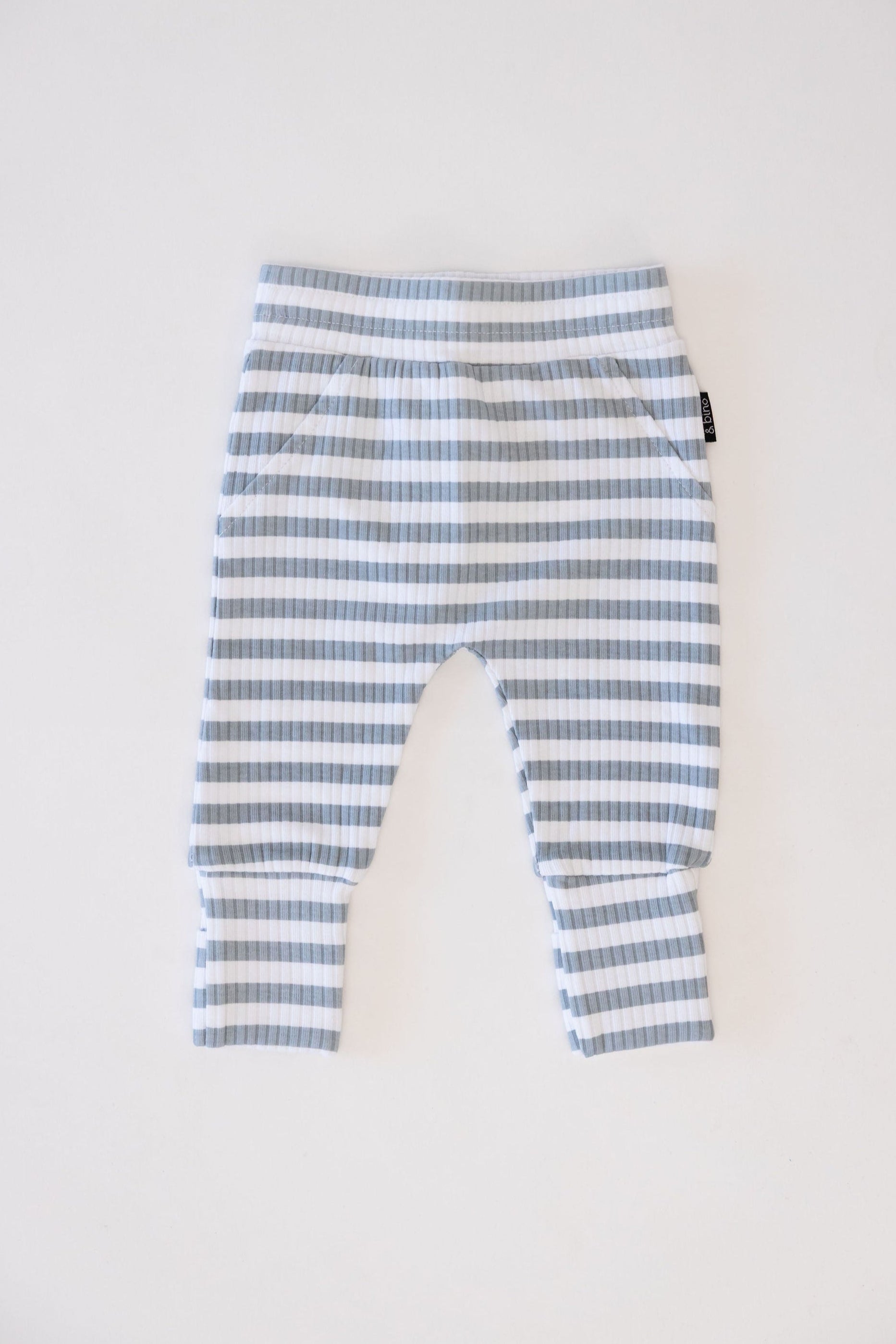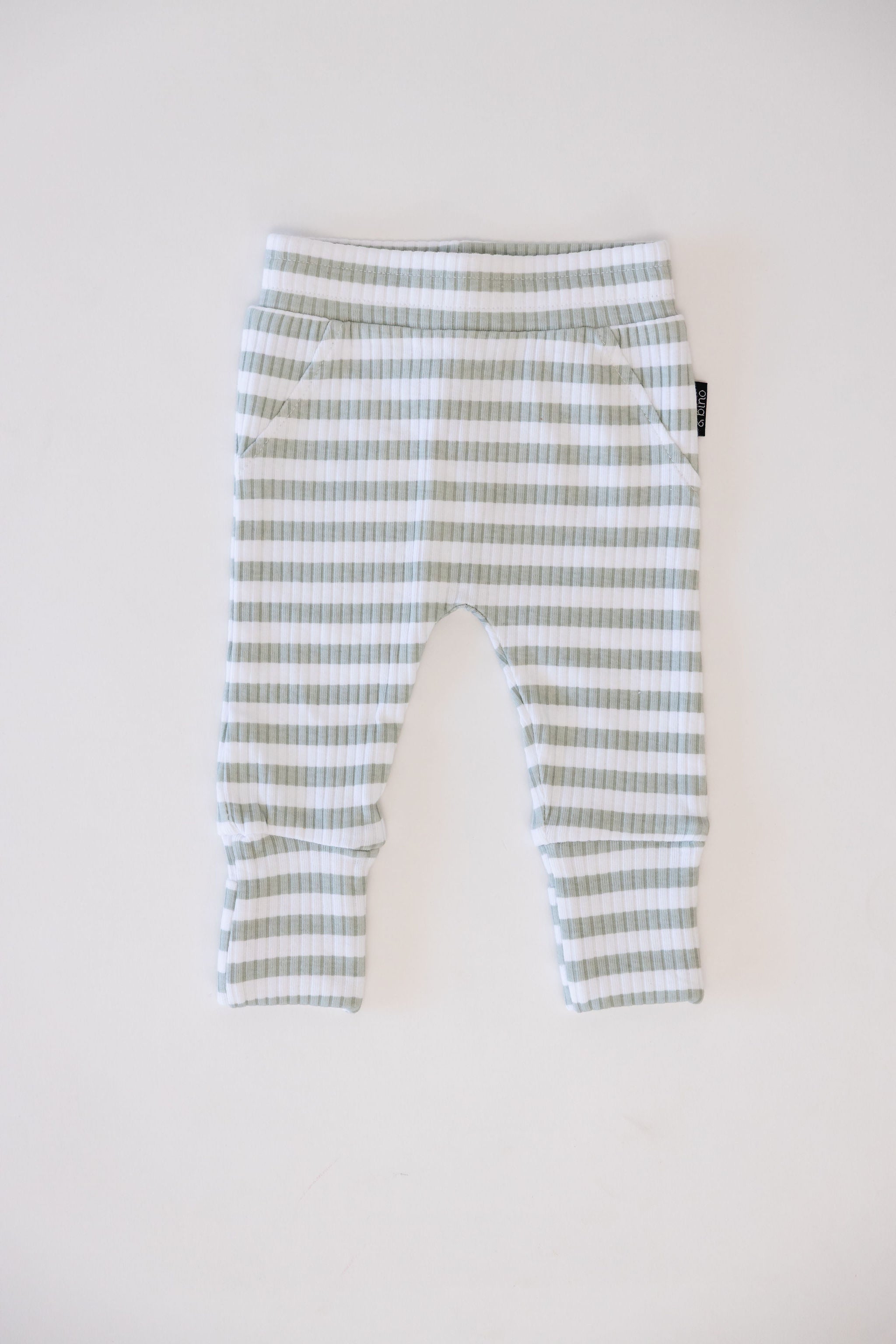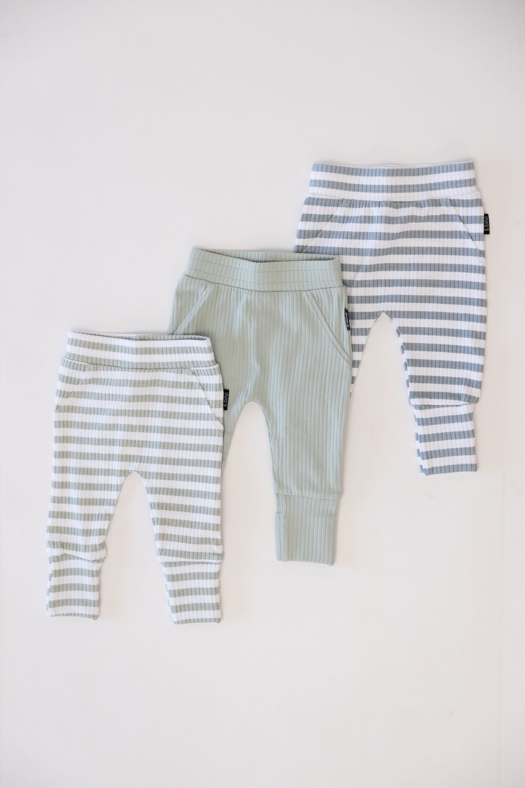 מארז 3 מכנסיים עם רגליות מתקפלות מבד ריב // SAGE + SAGE STRIPE + DUSTY BLUE STRIPE