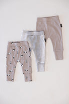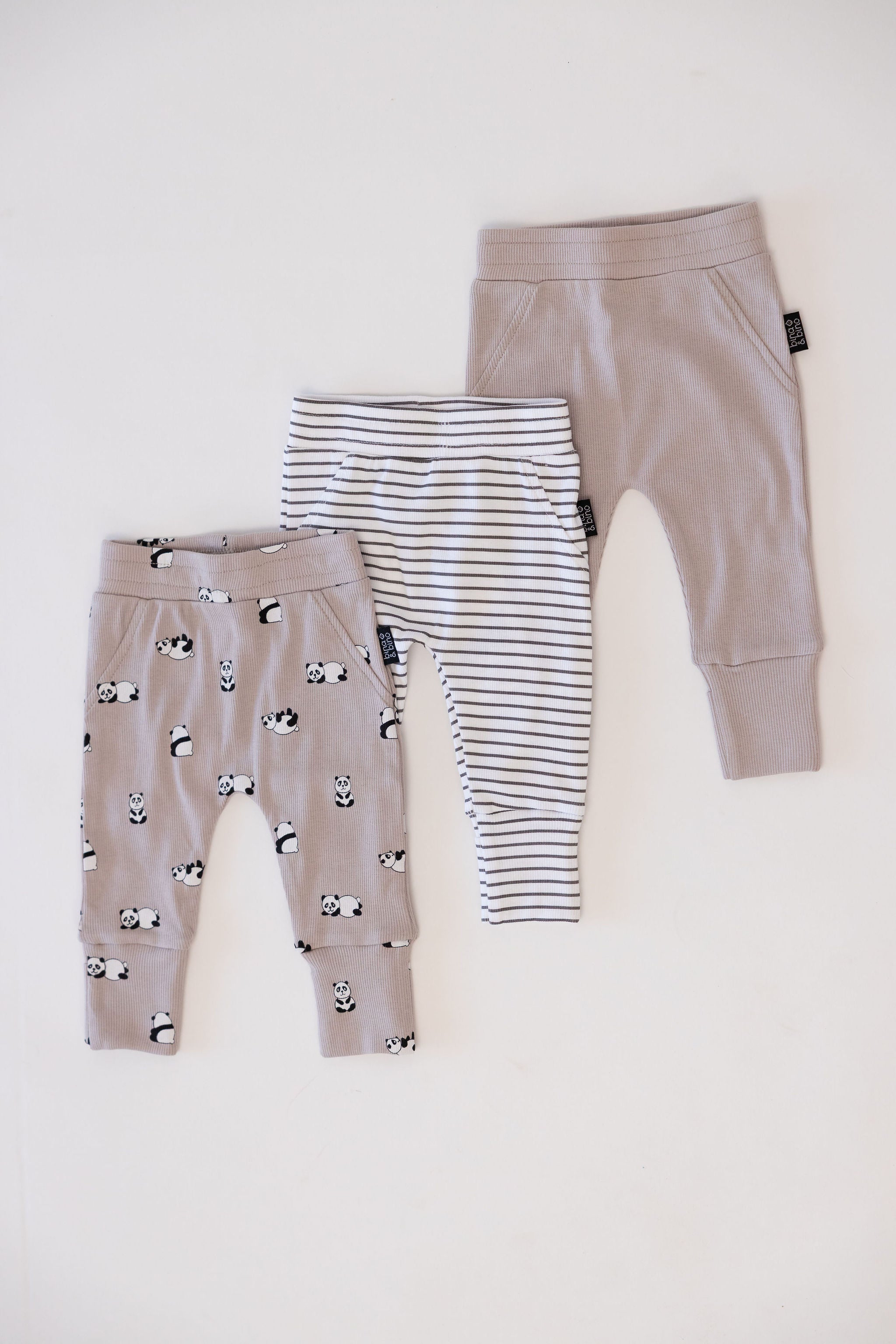 מארז 3 מכנסיים עם רגליות מתקפלות מבד ריב // TAUPE + CHARCOAL STRIPE + PANDA PARTY