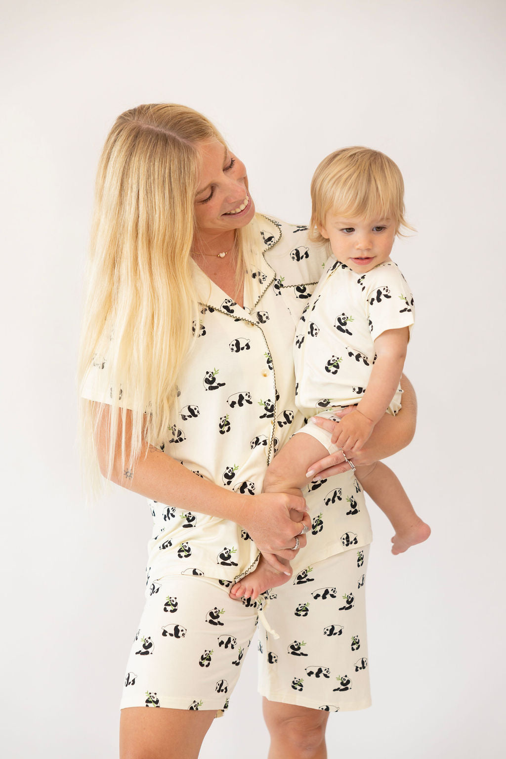 SMALL/MEDIUM - פיג'מה לאם ואוברול קצר לתינוק // SAVE THE PANDAS