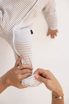 הרוכסן הדו כיווני הופך את זמן ההחתלה לסופר מהיר וקל! יש לרכוס מלמעלה בעת ההלבשה, ולסגור מלמטה שמחליפים חיתול (וכך לא חושפים את הבטן של התינוק)