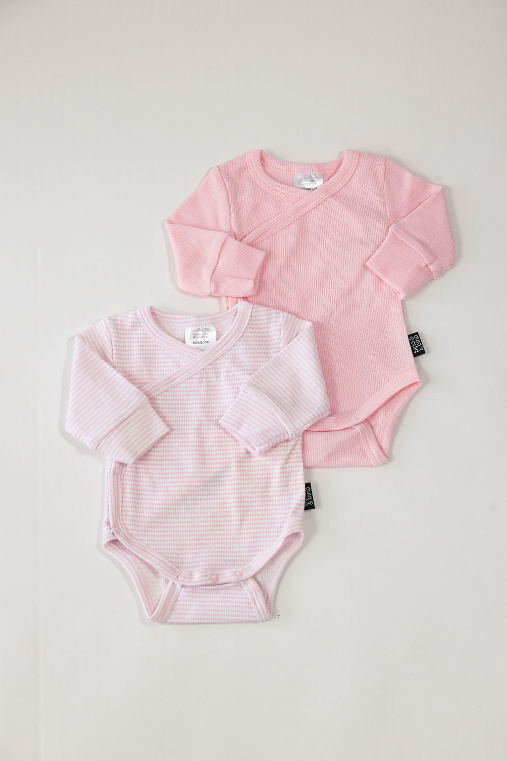 מארז 2 בגדי גוף מעטפת מבד ריב // PINK + PINK STRIPE