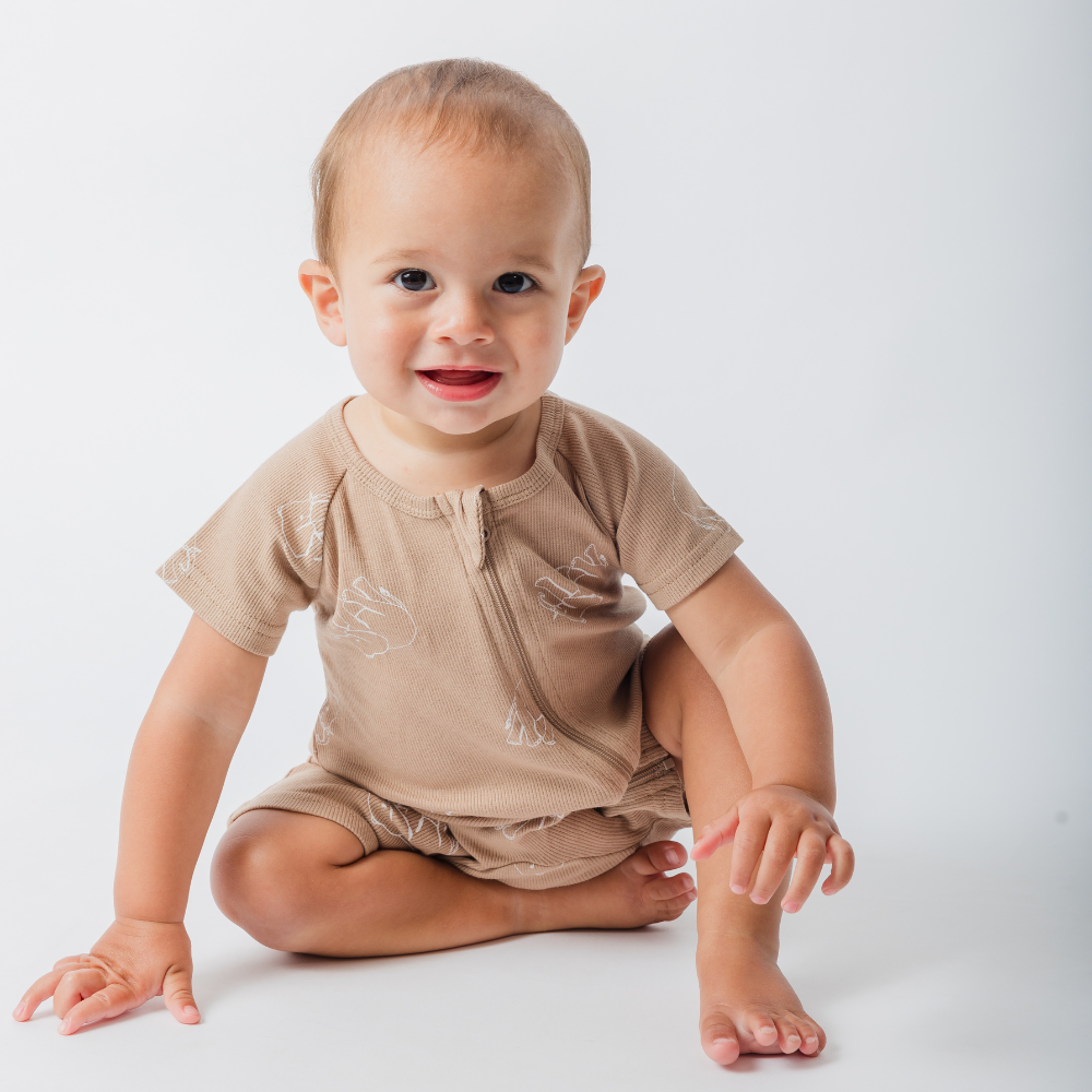 אוברול רוכסן דו כיווני עם שרוול קצר מבד ג'רסי