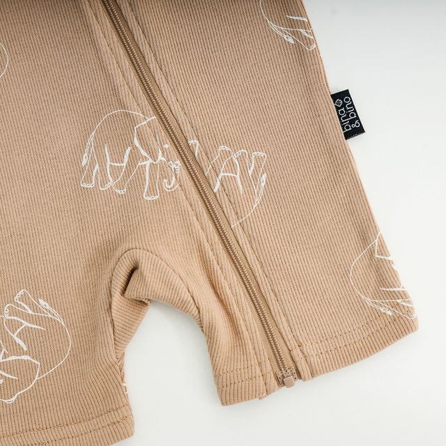 אוברול רוכסן דו כיווני עם שרוול קצר מבד במבוק