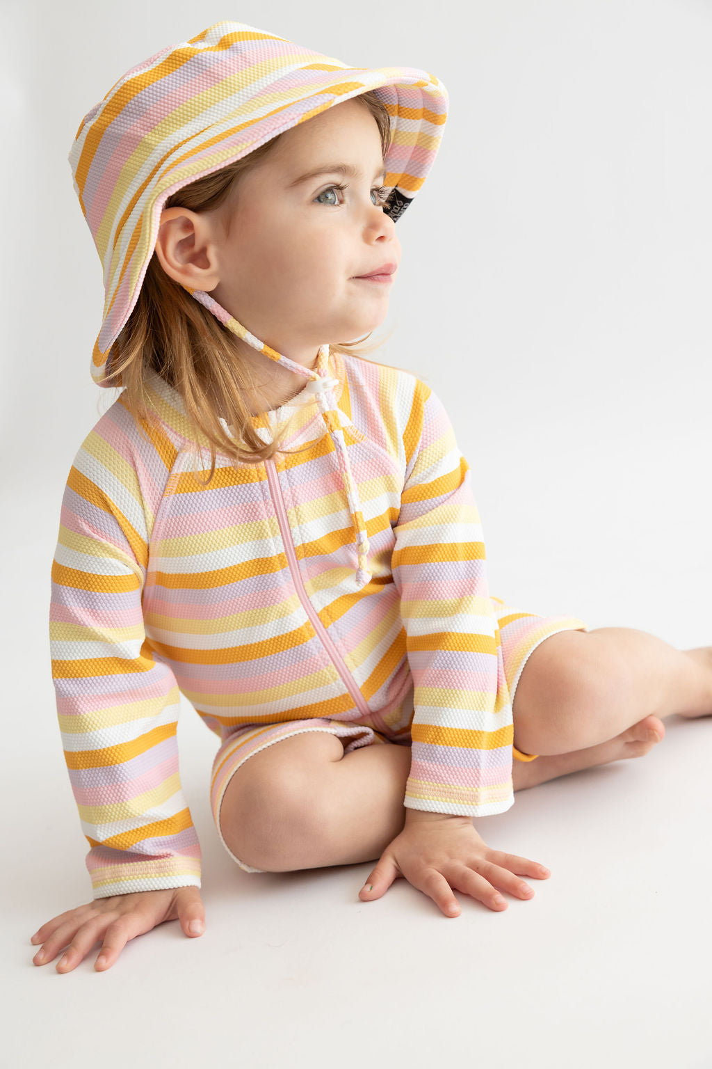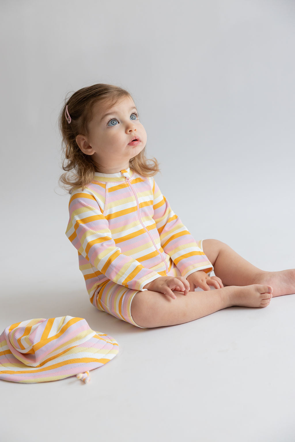 האוברול בגד ים מתאים באופן מושלם ל כובע למים חוסם קרינה מבד וופל // PINK SUNSET