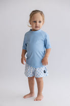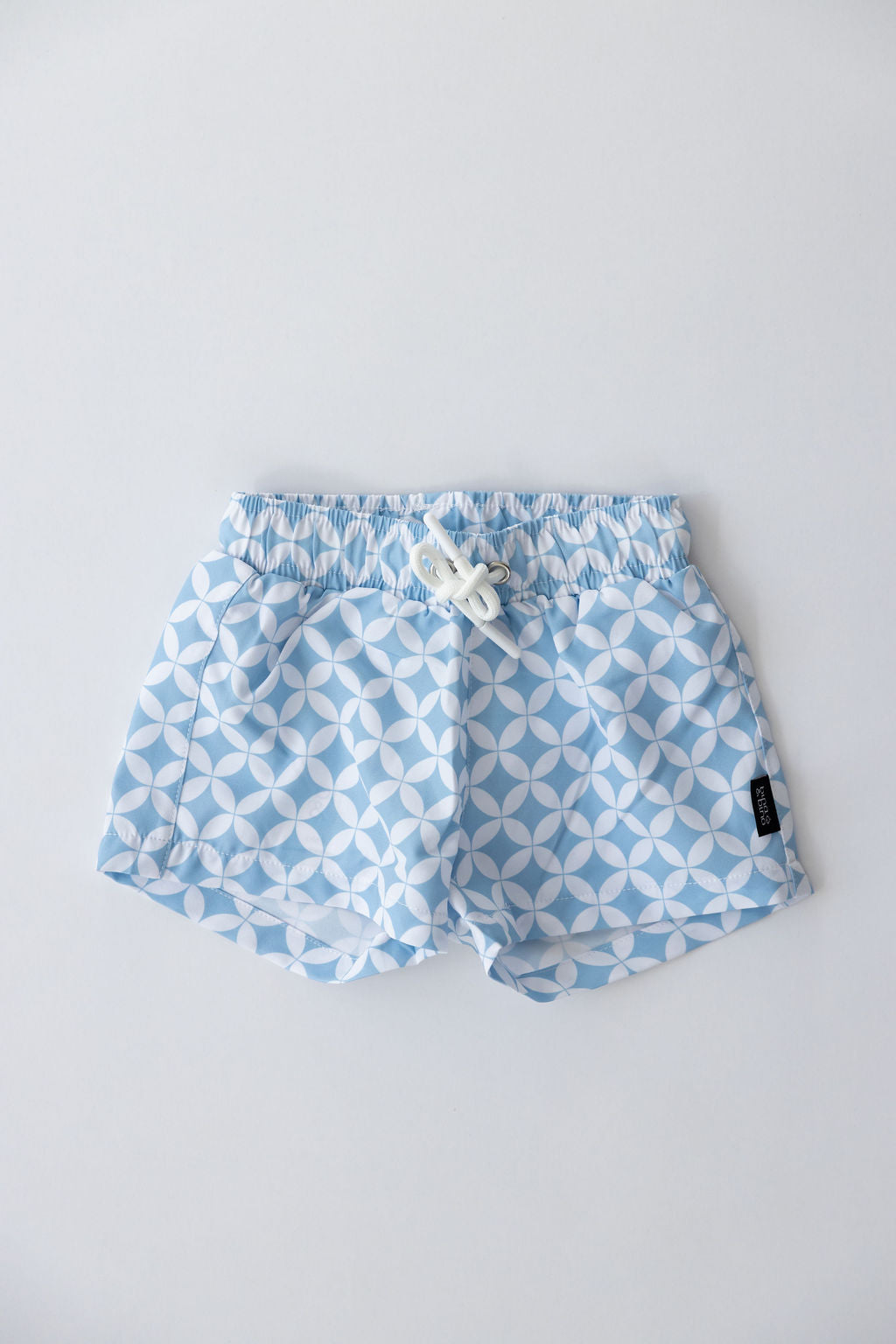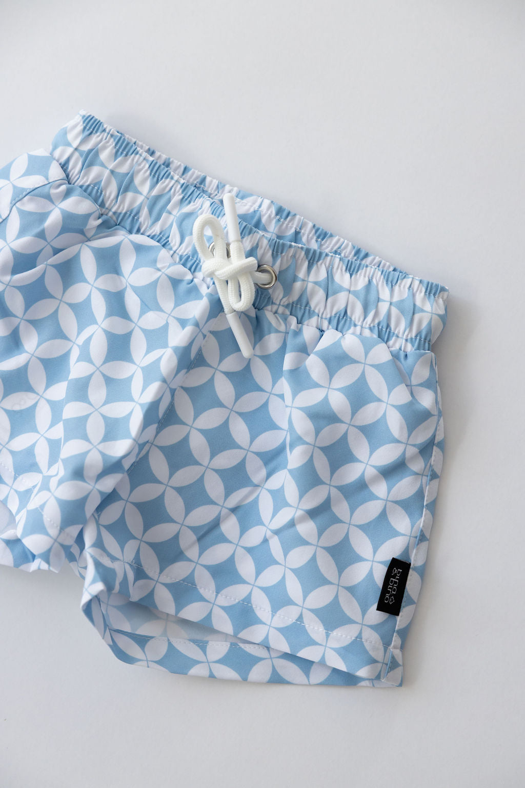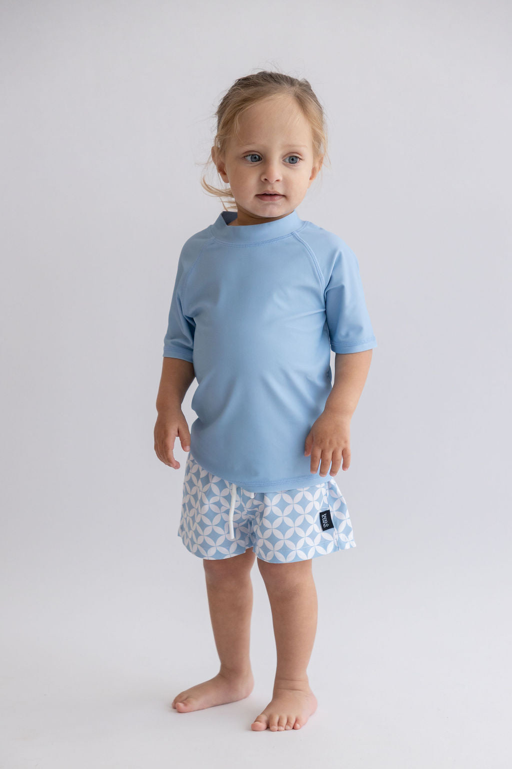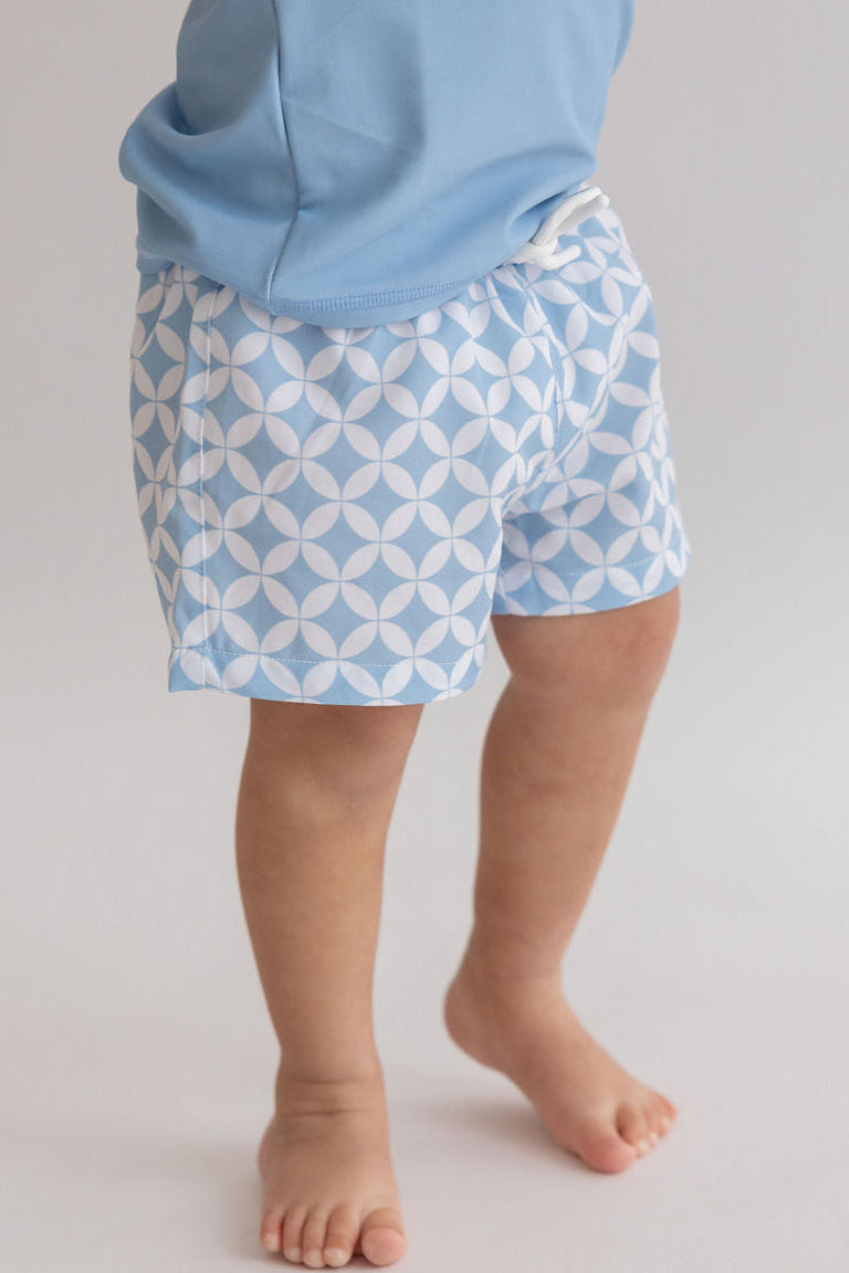 מכנסי בגד ים לילד תואמים באופן מושלם לכובע למים חוסם קרינה // SKY BLUE GEO