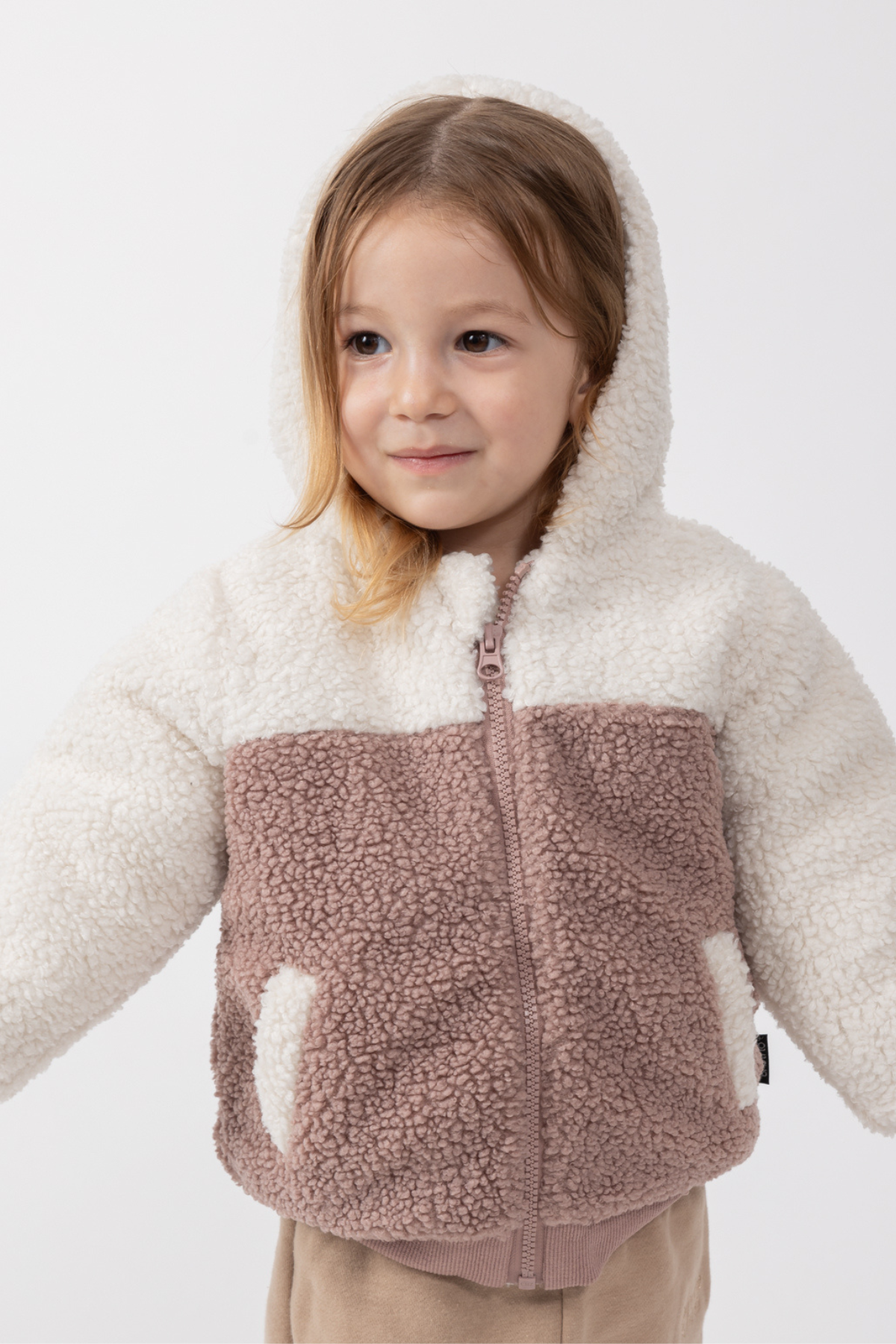 מעיל פרווה, סופר רך ומחמם. מעוצב עם רוכסן להלבשה נוחה ועם גימורים מבד ריב. החל ממידה 18-24 חודשים המעיל מגיע עם קפוצ'ון