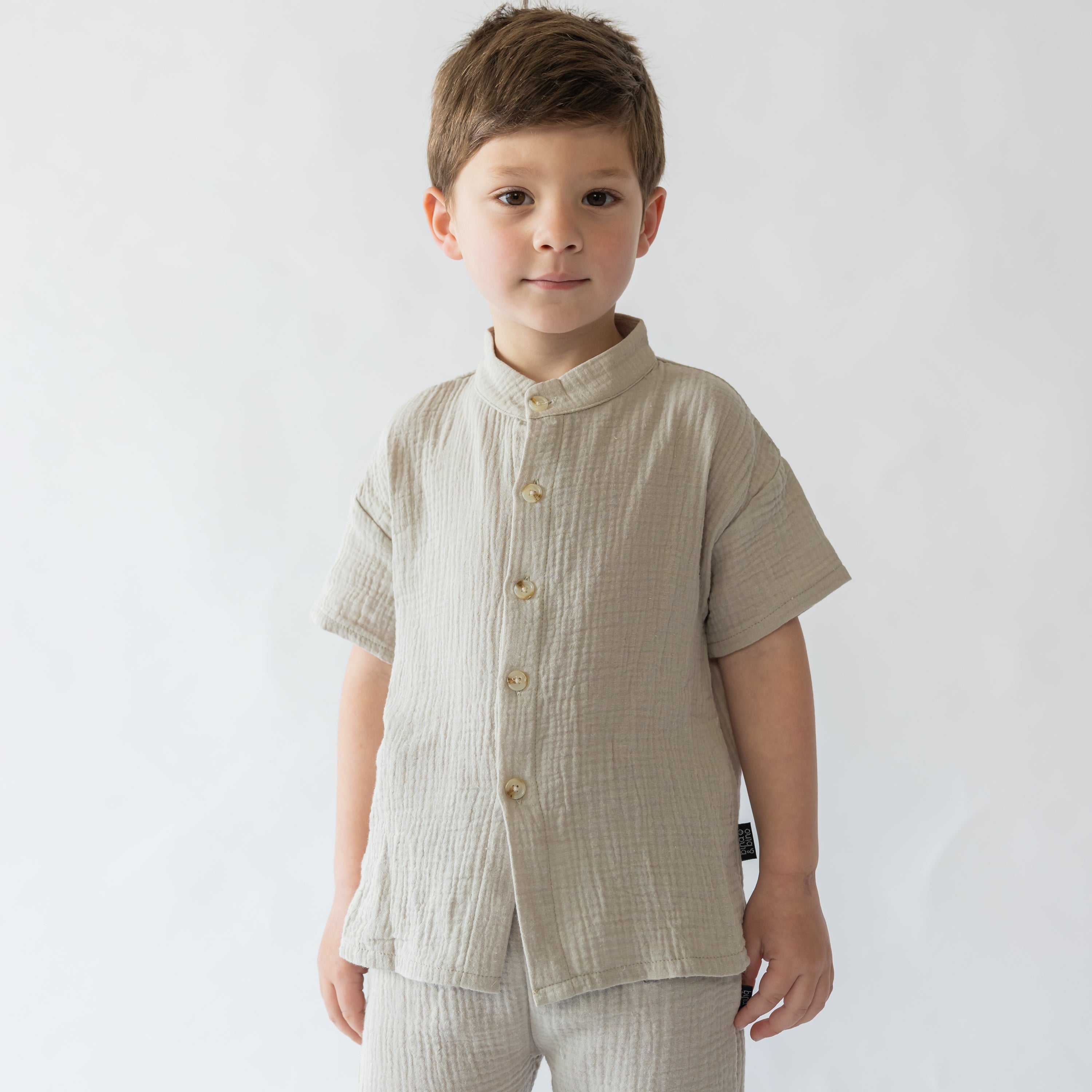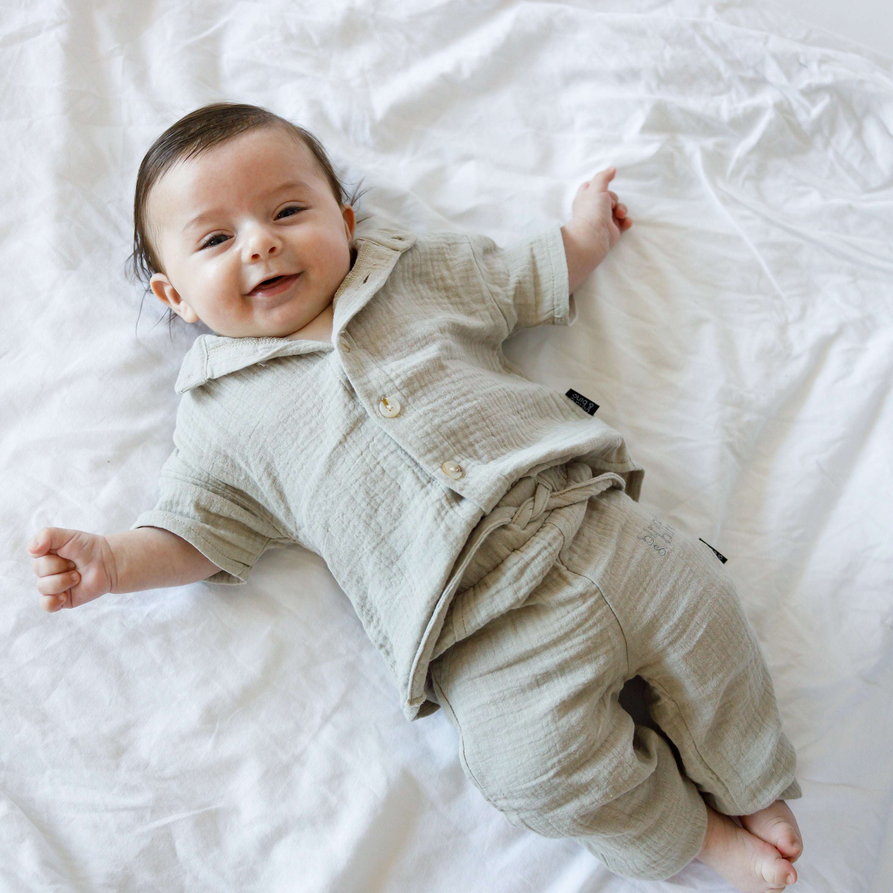 חליפת חולצה מכופתרת עם צאוורון סיני ומכנסיים, מבד טטרה. חגיגי וסופר נוח!